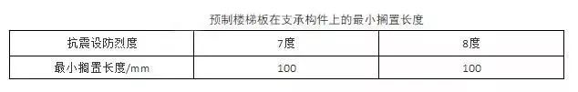預(yù)制樓梯板宜采用一端鉸接一端滑動鉸的方式連接,其轉(zhuǎn)動及滑動變形能力要滿足結(jié)構(gòu)層間變形的要求,且預(yù)制樓梯端部在支承構(gòu)件上的最小擱置長度應(yīng)符合要求。